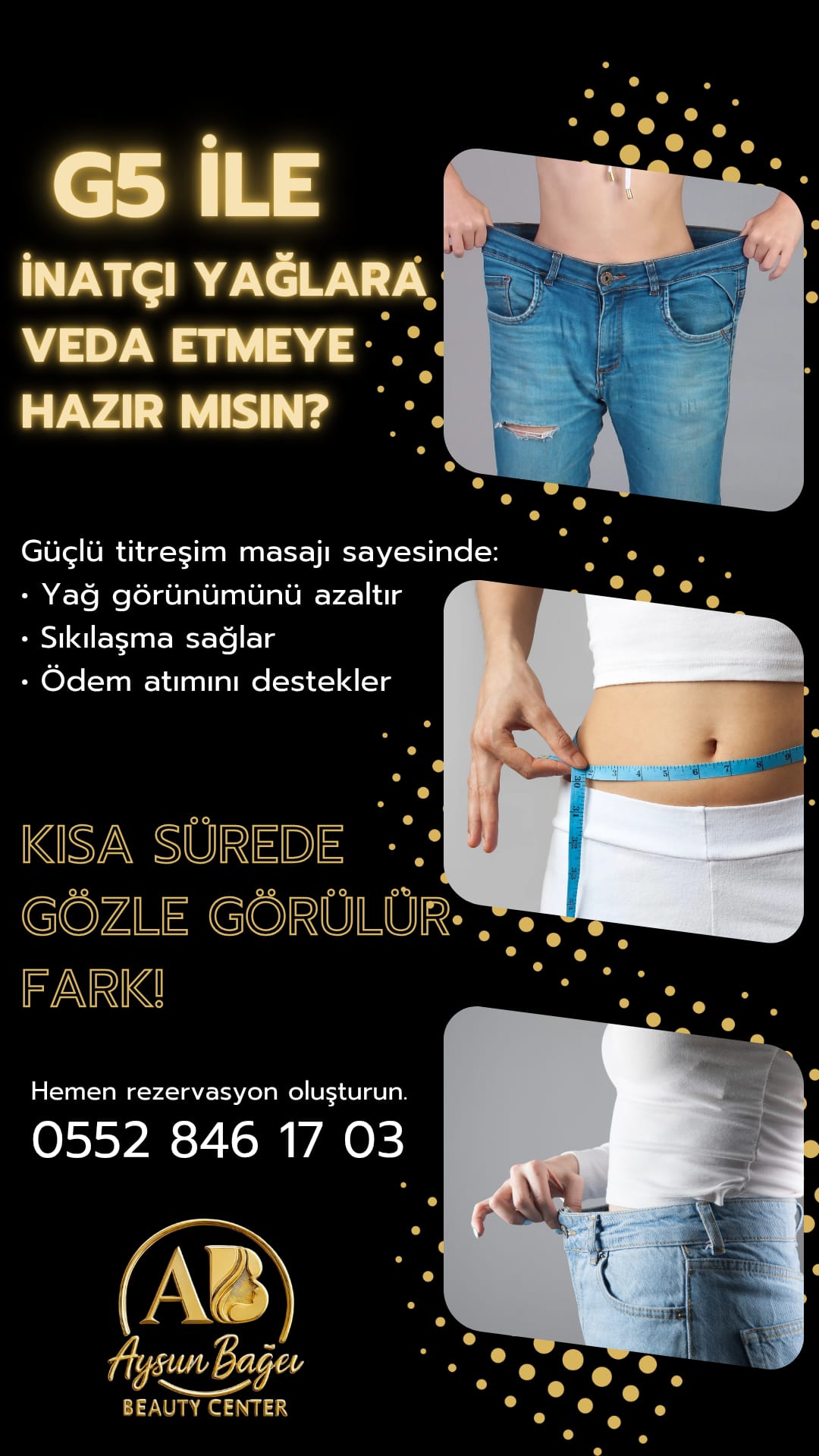 Bakımlı bir cilt, dengeli bir beden ve kendini iyi hisseden bir görünüm için buradayız.Uzman kadromuz ve modern uygulamalarımızla güzelliğinizi en doğru şekilde ortaya çıkarıyoruz.